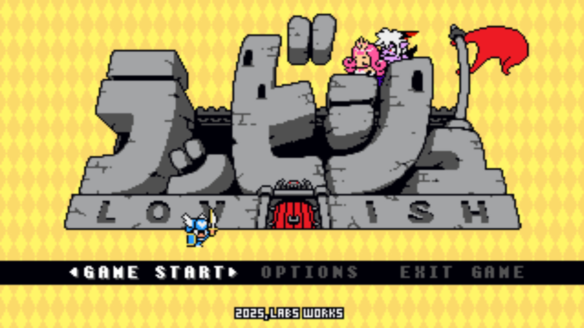 Lovish is an outrageous 8-bit action-adventure game! Quest with Sir Solomon through a series of bite-sized rooms, as he attempts to free Princess Tsuna, the woman he loves, from the Devil Lord’s clutches!